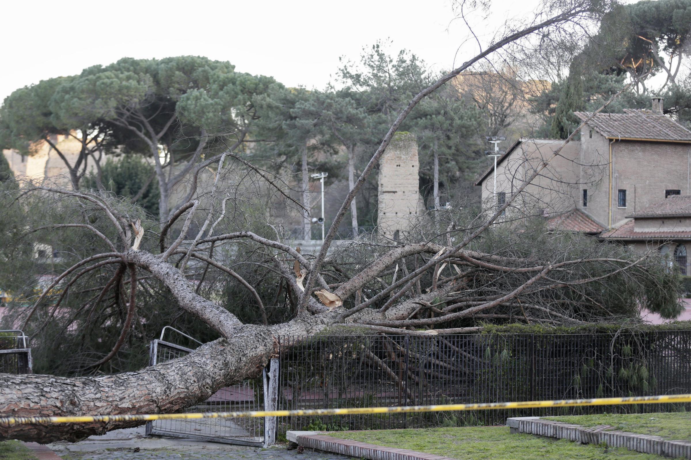 Raffiche di vento si sono abbattute su Roma e nel Lazio nel corso della giornata di oggi. Molti i danni e gli alberi caduti. Questa mattina alle 9.30 un grosso pino si è abbattuto sulla pista di atletica dello Stadio delle Terme di Caracalla e già ieri a Monteverde un tronco era caduto tra auto e motorini. Sempre nella giornata di oggi un tronco è cascato su un palazzo in via Appia Antica tra vicolo di Tor Carbone e via dei Lugari. Sui binari della linea Roma-Viterbo è cascato un grosso albero provocando ritardi sulla circolazione ferroviaria: il traffico è stato sospeso tra le 8 e le 10 tra Oriolo e Manziana. A Viterbo il sindaco ha ordinato la chiusura dei cimiteri dopo che alcuni alberi sono crollati in quello di San Lazzaro. A Subiaco invece un anziano è rimasto ferito nella tarda mattina dopo essere stato colpito alla testa dal crollo di un grosso ramo.